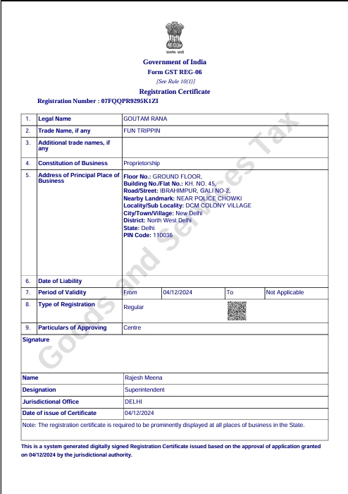 At FunTripping, we believe in providing not just unforgettable travel experiences but also complete transparency and trust. We are a legally compliant travel platform, registered under all required government regulations to ensure safe, secure, and reliable services for our customers